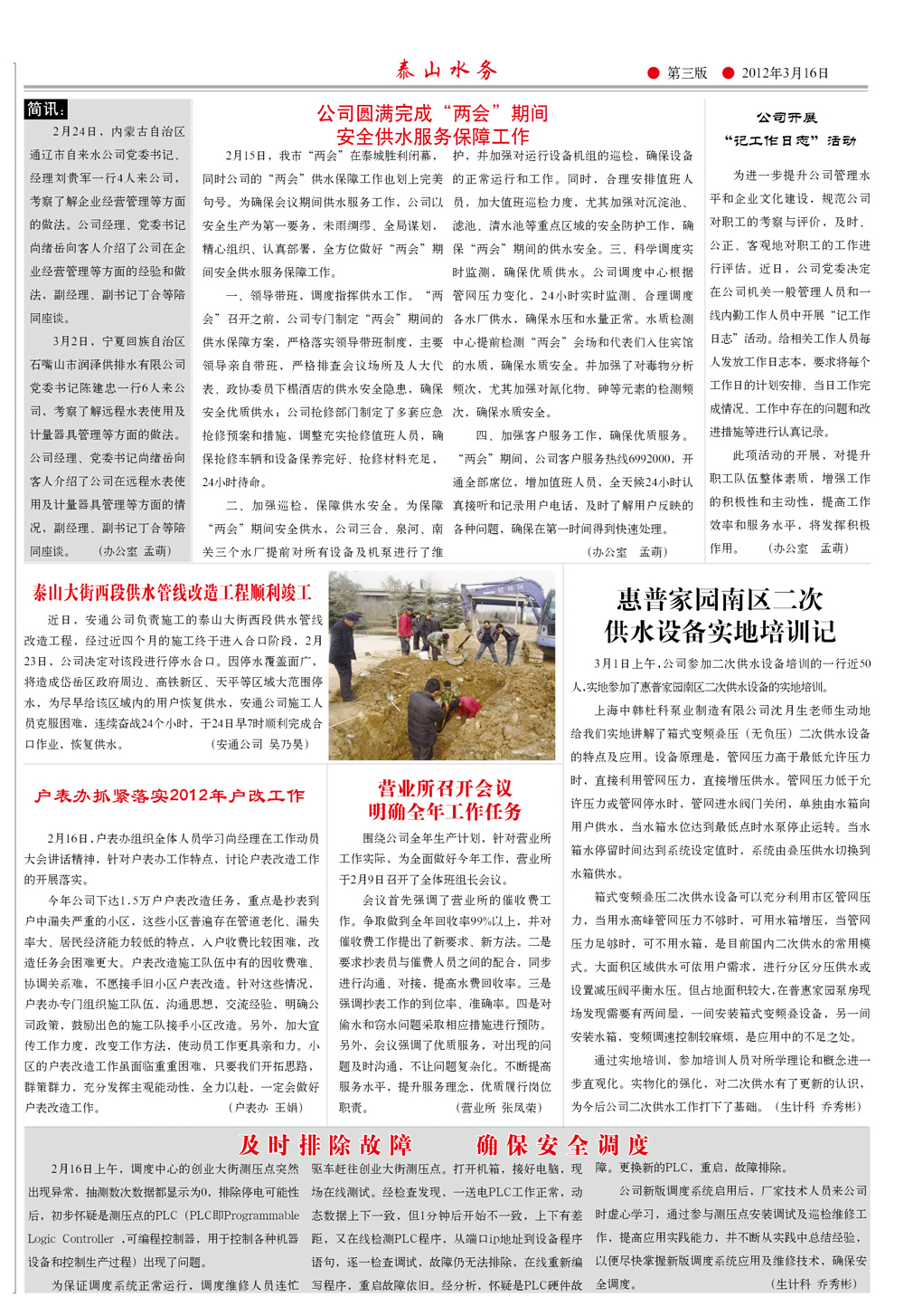 提高服务窗口质量 增强安全生产管理 确保生产及饮用水供应达标